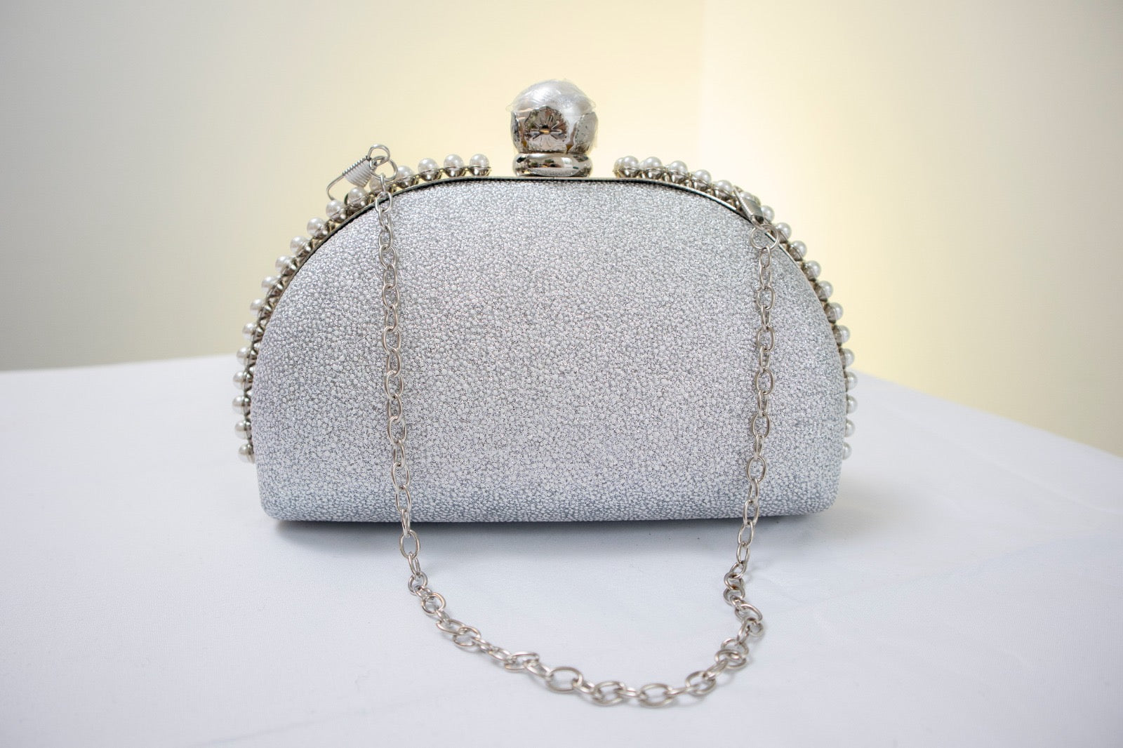 Elevate your ensemble with this Classic Style Elegant Pearl Clutch, adorned with shimmering diamonds for a touch of refined luxury. Its timeless design pairs perfectly with formal occasions, offering both style and sophistication in a compact, easy-to-carry accessory.